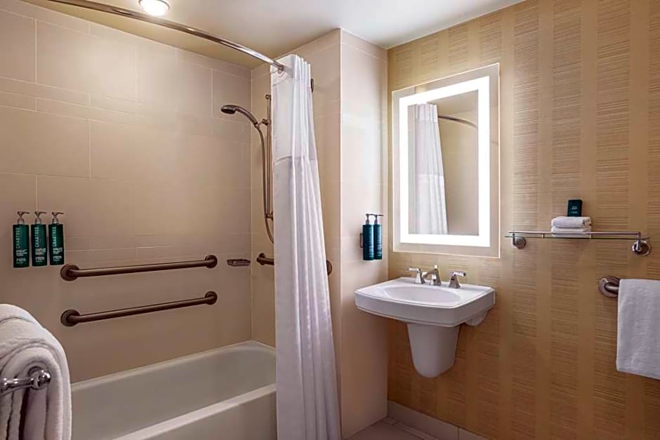 This accessible room features a flat-screen cable TV, iPod docking station, and private bathroom with granite, marble, and a bath tub. Visual and audible alarms are also included.